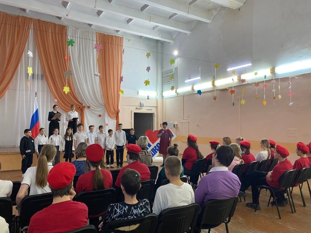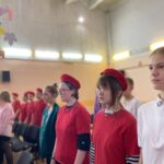 Под звуки гимна школьники дали торжественную клятву, пообещав честно исполнять обязанности Юнармейца и бережно хранить память о ратных традициях Отечества.