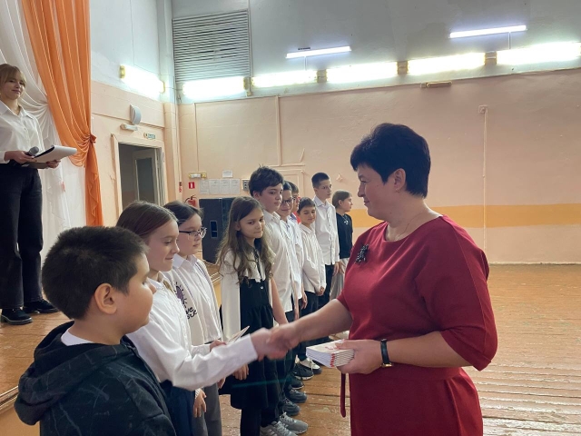 Самым волнующим моментом стало вручение памятных символов Юнармии. Ученики получили из рук Альфии Харисовны книжки юнармейца, как символ принадлежности к движению Юнармии.